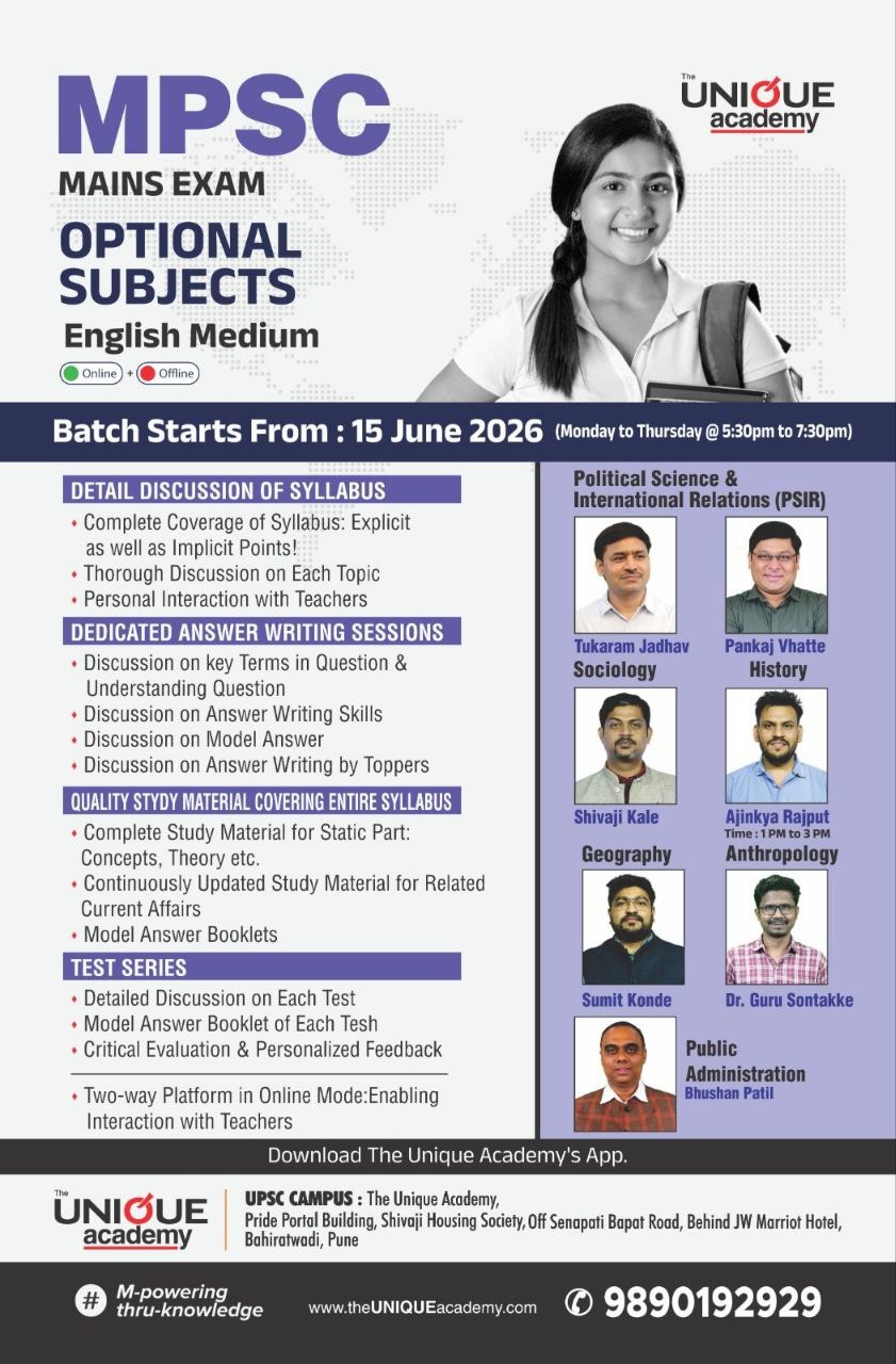 ✅ राज्यसेवा परीक्षेच्या बदललेल्या अभ्यासक्रमानुसार वैकल्पिक विषयांचे मार्गदर्शन.